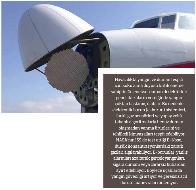 Sonuç olarak, uçaklarda koku duyusunun yerini alacak bu elektronik burunlar sayesinde hem yangın emniyeti artacak hem de gereksiz acil durum dönüşleri önlenebilecektir.