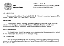 2025-23-51 numaralı FAA Emergency AD, uçağın kalkışı sırasında motorunun düşmesi nedeniyle yaşanan kazaya vurgu yapıyor ve bu kazanın araştırılıp motorun düşme nedeninin bulunması ve uçaklara düşmeyi engelleyici ve FAA tarafından kabul edilecek bir düzeltici işlem uygulanana kadar bu uçakların uçmasını yasaklıyor.