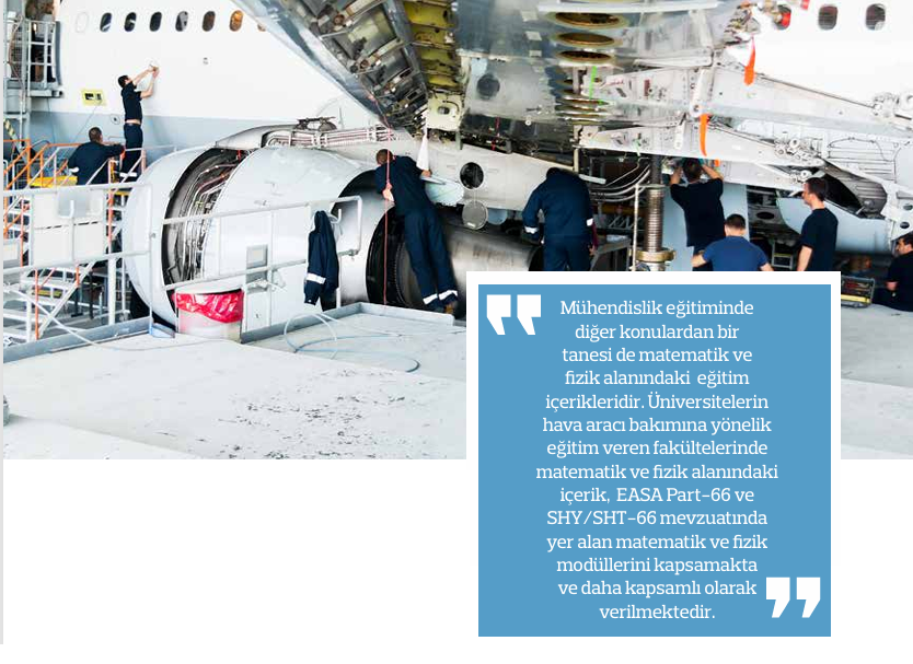 Mühendislik eğitiminde diğer konulardan bir tanesi de matematik ve fizik alanındaki eğitim içerikleridir. Üniversitelerin hava aracı bakımına yönelik eğitim veren fakültelerinde matematik ve fizik alanındaki içerik, EASA Part-66 ve SHY/SHT-66 mevzuatında yer alan matematik ve fizik modüllerini kapsamakta ve daha kapsamlı olarak verilmektedir.