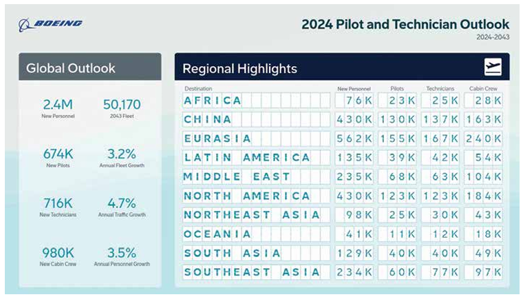 • Boeing (2024) – Pilot and Technician Outlook 2024–2043 • Airbus (2023) – Global Market Forecast 2023–2042