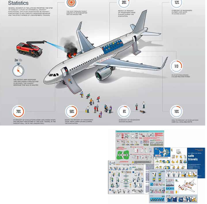 Tahliye anında en büyük sorunlardan biri, yolcuların kabindeki kişisel eşyalarını ve bagajlarını yanlarına almaya çalışmasıdır. Türkiye Cumhuriyeti Sivil Havacılık Genel Müdürlüğü talimatlarına göre: “Tahliye işlemleri sürecinde, yolcuların kabin bagajlarını baş üstü dolaplardan almaya çalışan veya aldığı bagajını yanında taşıma isteğiyle hareket eden yolcuların, tahliye sürecini yavaşlatıcı ve tıkayıcı etkileri nedeniyle bu davranıştan kaçınmaları hayati önem taşır. Acil bir durumda bagajınızı almayı denemeyin; hemen en yakın çıkışa yönelin.”