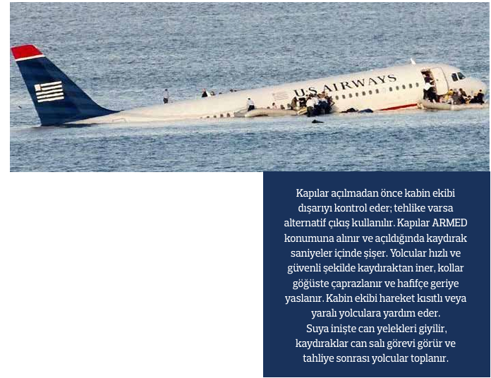 Kabin Ekibi Hazırlığı: Ekip, kendi çarpma pozisyonlarını alır, çıkış kapılarını ve kaydırakları (slide) kontrol eder ve dışarıdaki tehlikeleri (yangın, su) gözlemlemek için kendini hazırlar.