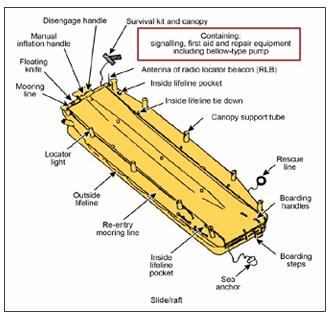 Yolcular, can yeleklerini giyerler ancak şişirme ipini uçak içindeyken çekmemeleri hayati önem taşır. Şişmiş yelek, kapılardan ve çıkışlardan geçişi engelleyerek tehlike yaratır. Tahliye kaydırakları (slaytlar), suya inişte ‘can salı’ (raft) görevi görmek üzere tasarlanmıştır. Belirli bir kaldırma kuvvetine sahiptirler. Tahliye tamamlandıktan sonra, kabin ekibi şişme salı uçaktan ayırır ve yolcuları toplayarak hayatta kalma (survival) prosedürlerini uygular.