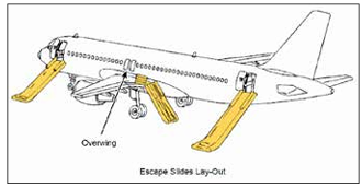 Tahliye Kaydırakları (Slide): Çoğu ticari uçakta, acil çıkış kapılarının altında bulunan ve açıldığında şişerek yolcuların hızla yere inmesini sağlayan şişme kaydıraklardır.