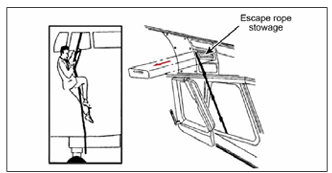 Kaçış paraşütleri olmayan acil durum çıkışları bulunan sivil yolcu uçaklarında acil durum halatları bulunur. Bunlar ayrıca kanat üstü acil durum çıkışlarına da takılır. Çıkışların yanındaki veya üstündeki yapıya tutturulurlar. Kanat üstü yolcu acil çıkışlarında, bu halatlara genellikle acil durum penceresi açıldıktan sonra erişilebilir ve kanadın üst yüzeyindeki bir bağlantı parçasına takılabilen bir kanca ile donatılmıştır. Bu halatlar, yolcuların suya inişten sonra kanat üzerinde kalmalarını sağlar. Acil durum halatları, uçuş ekibi acil çıkışlarının yanına da takılır. Uçuş ekibi, bu halatlardan kayarak kokpitten güvenli bir şekilde kaçabilir.